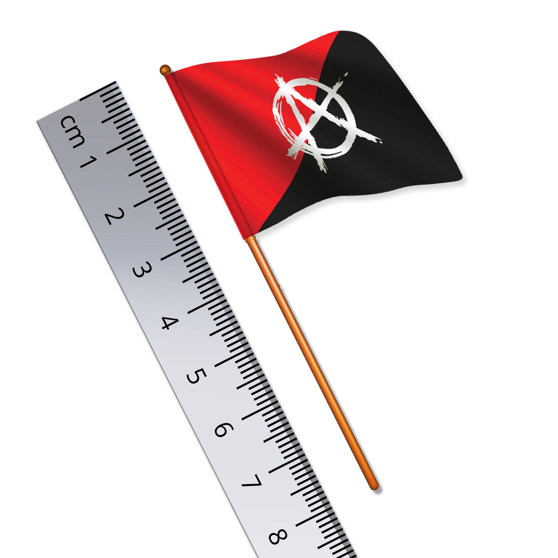 The colours black and red have been used by anarchists since at least the late 1800s when they were used on cockades by Italian anarchists in the 1874 Bologna insurrection and in 1877 when anarchists entered the Italian town Letino carrying red and black flags to promote the First International. Diagonally divided red and black flags were used by anarcho-syndicalists in Spain such as the labour union CNT during the Spanish Civil War. George Woodcock writes that the bisected black-and-red flag symbolized a uniting of "the spirit of later anarchism with the mass appeal of the [First] International". The symbol composed of the capital letter A surrounded by a circle is universally recognized as a symbol of anarchism and has been established in global youth culture since the 1970s. (©Wikipedia)