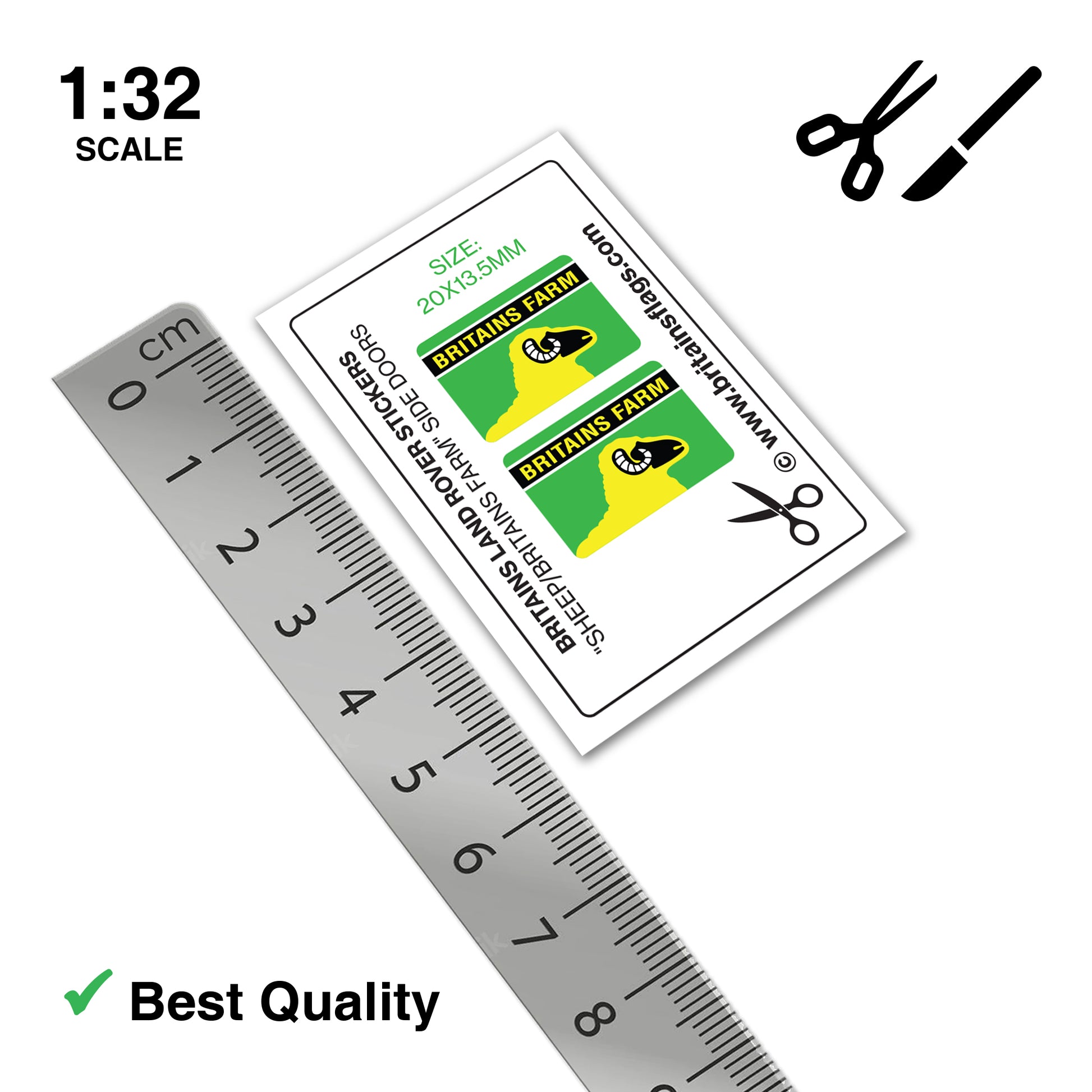 See image as a guide to the sizes. Suitable for the Britains Deetail Farm SWB (Short-Wheel-Base) Land Rover vehicle. Approx. size of sheet: 40mm x 57mm. Size of individual stickers (once cut out): 20mm x 13.5mm