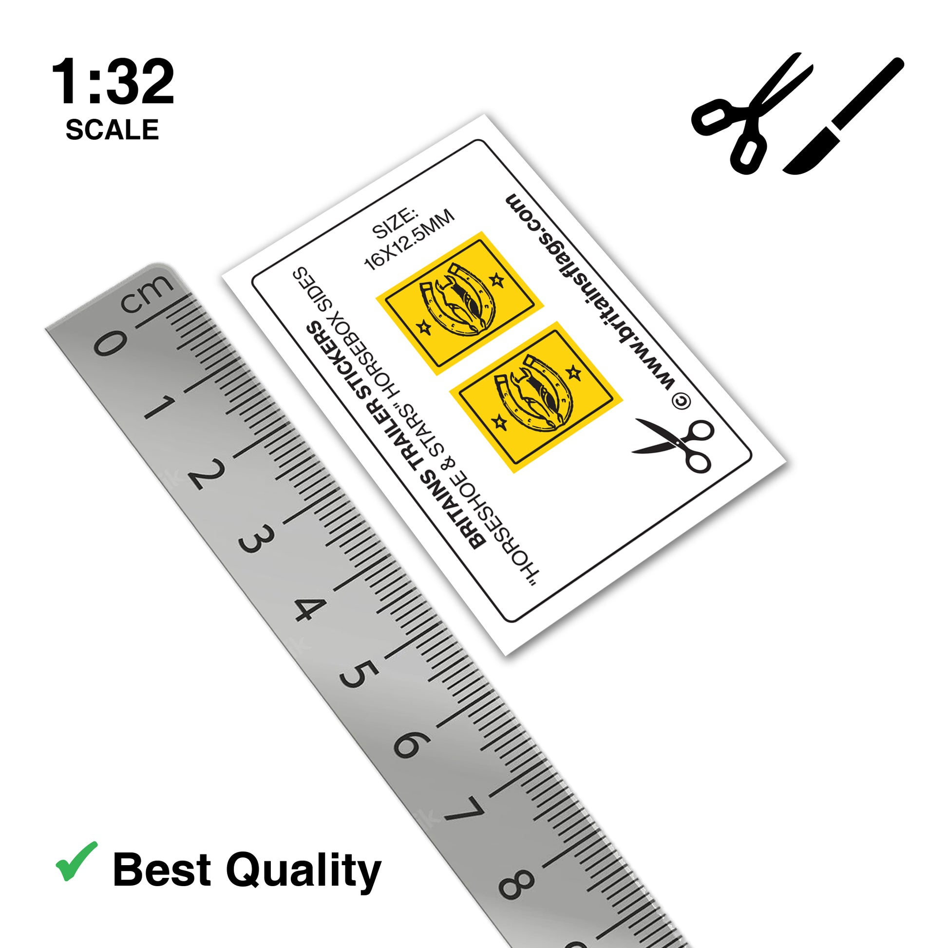 BRITAINS DEETAIL STYLE Land Rover Labels/Stickers (High Quality) for 1/32 Scale Vehicles. Could also be used for other 1:32 Scale vehicles across other toy ranges but these are designed with the Britains Land Rovers in mind. Here you have the side markings of the detachable Horsebox / Horse Trailer (horse head, horseshoe, stars motif).