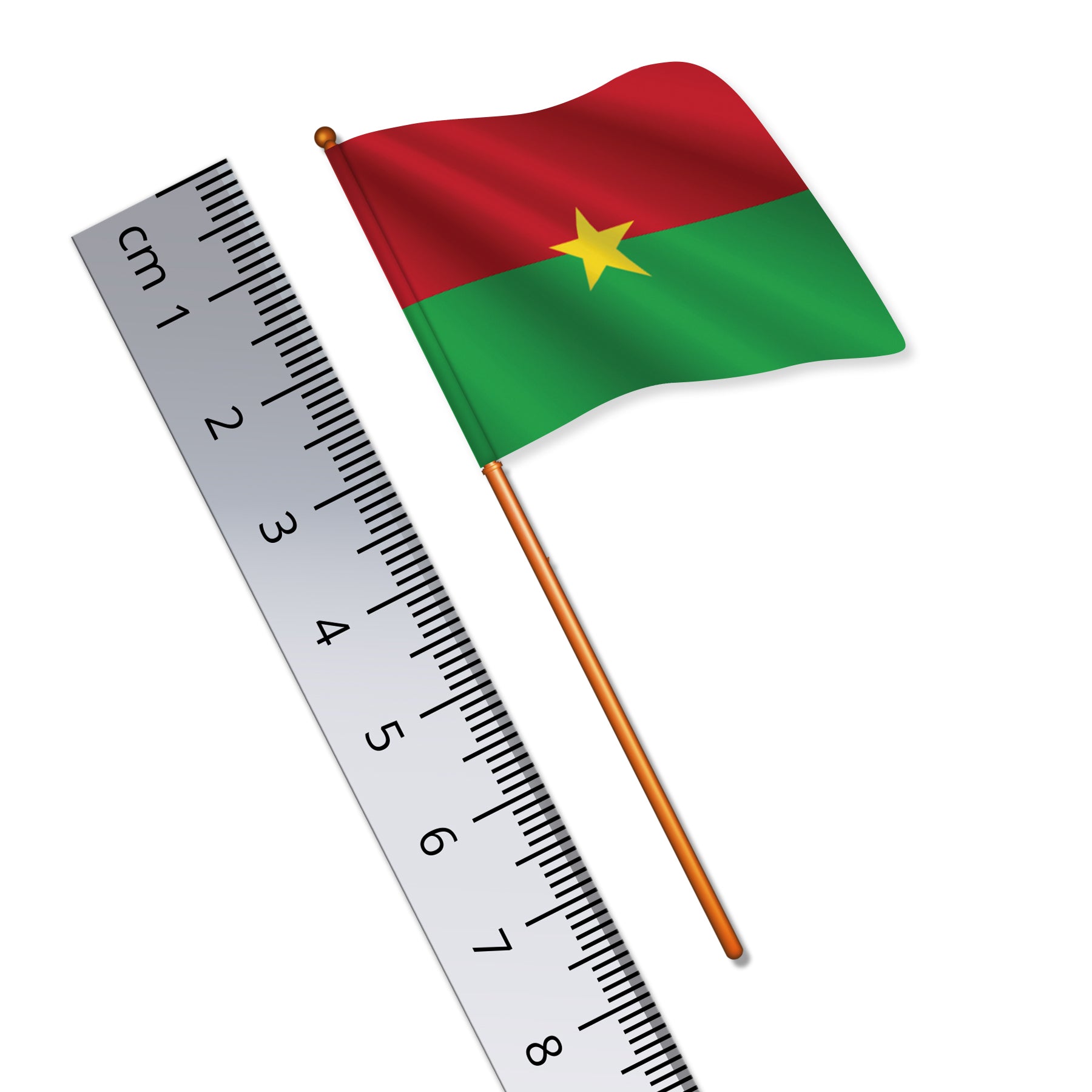 The national flag of Burkina Faso is formed by two equal horizontal bands of red (top) and green, with a yellow five-pointed star resting in the centre. The flag was adopted on 4 August 1984. The flag uses the Pan-African colours of Ethiopia, reflecting both a break with the country's colonial past and its unity with other African ex-colonies. The red is also said to symbolize the revolution and the green the abundance of agricultural and natural riches. The yellow star placed over the red and green stripes represents the guiding light of the revolution. The flag was adopted following the coup of 1983 which brought Thomas Sankara to power. (©Wikipedia)