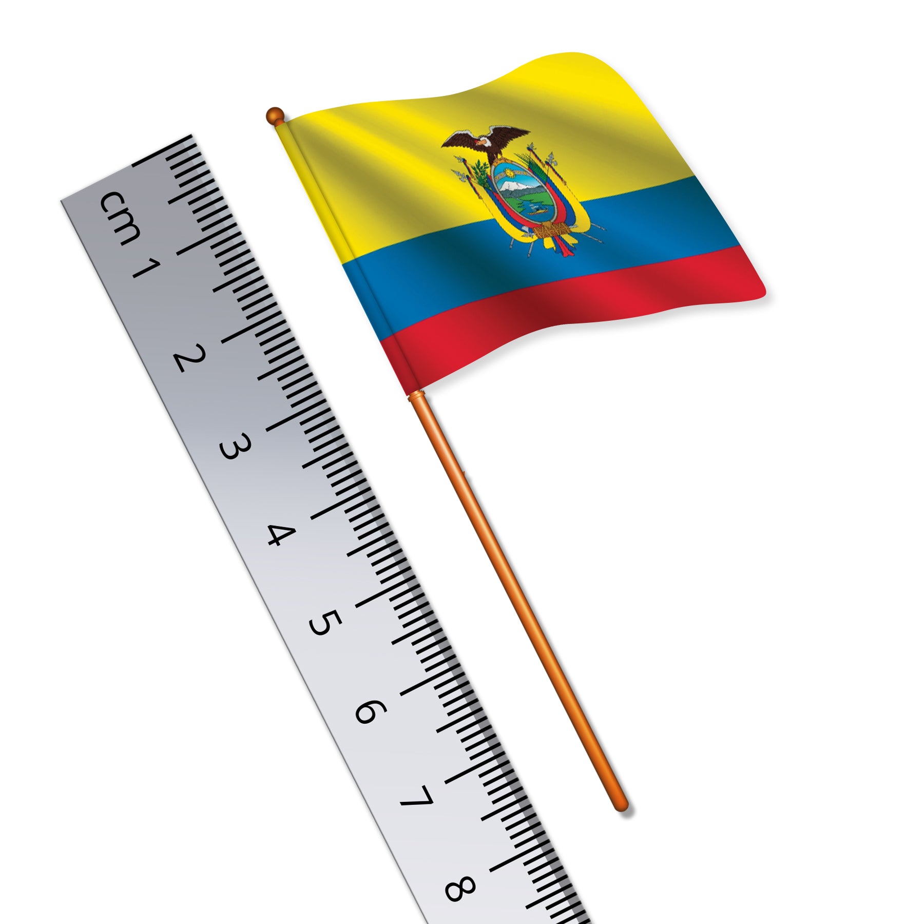 The national flag of Ecuador, which consists of horizontal bands of yellow (double width), blue and red, was first adopted by law in 1835 and later on 26 September 1860. The design of the current flag was finalized in 1900 with the addition of the coat of arms in the centre of the flag. Before using the yellow, blue and red tricolour, Ecuador's former flag had three light blue stripes and two white stripes with three white stars for each province of the country. The design of the flag is very similar to those of Colombia and Venezuela, which are also former constituent territories of Gran Colombia. All three are based on a proposal by Venezuelan General Francisco de Miranda, which was adopted by Venezuela in 1811 and later Gran Colombia with some modifications. (©Wikipedia)