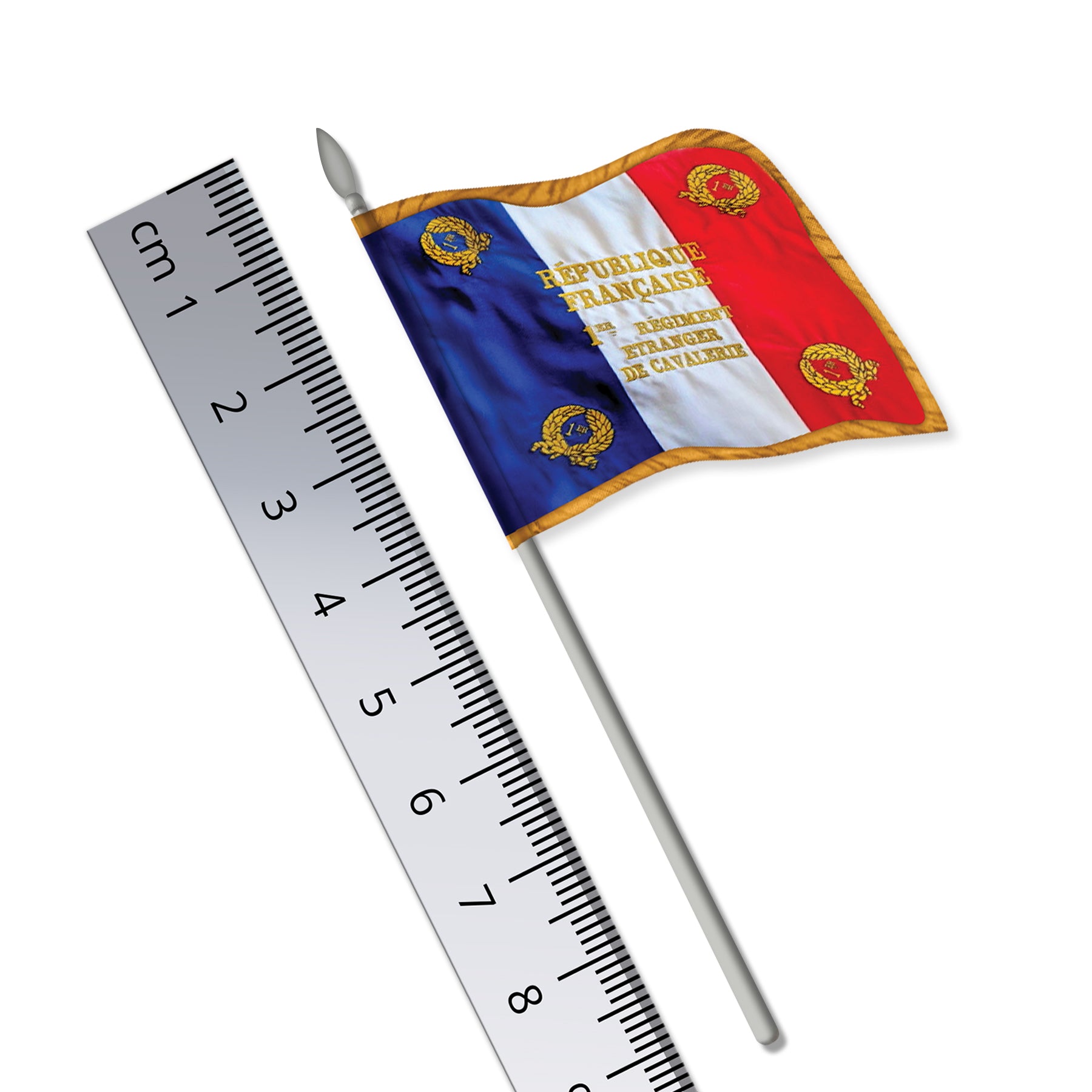 · Size: Flag width: 40mm / Pole height: 93mm inc. spearhead (Pole diameter: 2mm)