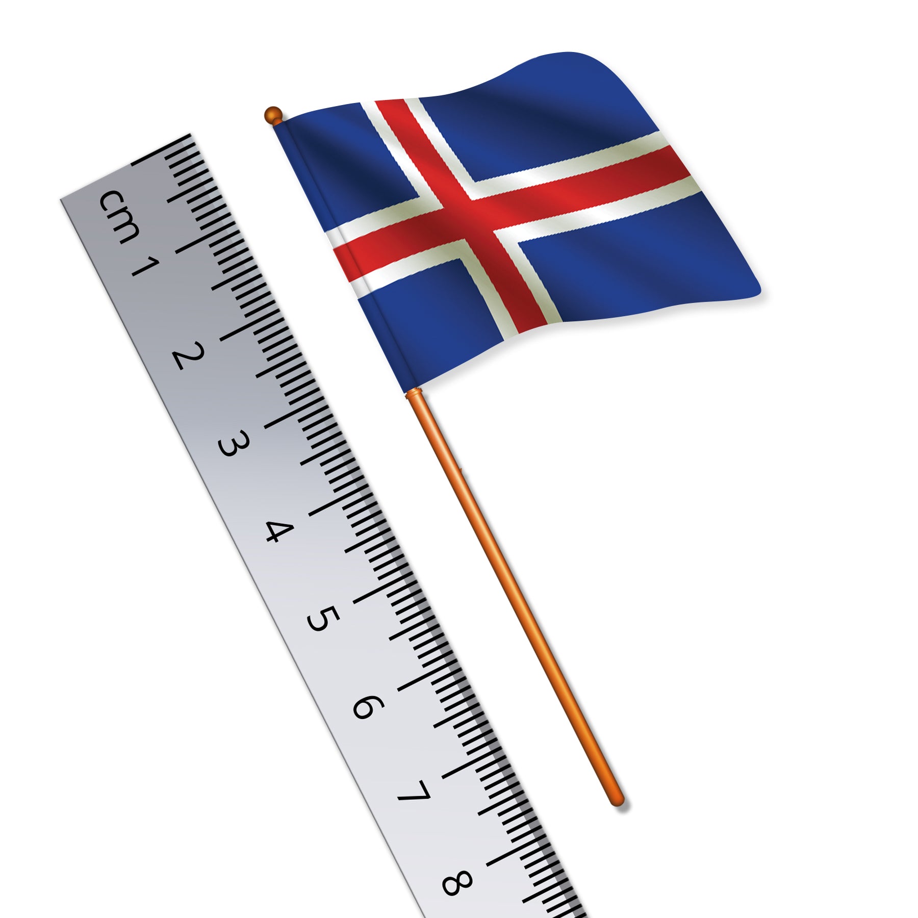 The flag of Iceland was officially described in Law No. 34, set out on 17 June 1944, the day Iceland became a republic. The law is entitled "The Law of the National Flag of Icelanders and the State Arms" and describes the Icelandic flag as follows: The civil national flag of Icelanders is blue as the sky with a snow-white cross, and a fiery-red cross inside the white cross. The arms of the cross extend to the edge of the flag, and their combined width is 2⁄9, but the red cross 1⁄9 of the combined width of the flag. The blue areas are right angled rectangles, the rectilinear surfaces are parallel and the outer rectilinear surfaces as wide as them, but twice the length. The dimensions between the width and length are 18:25. (©Wikipedia)