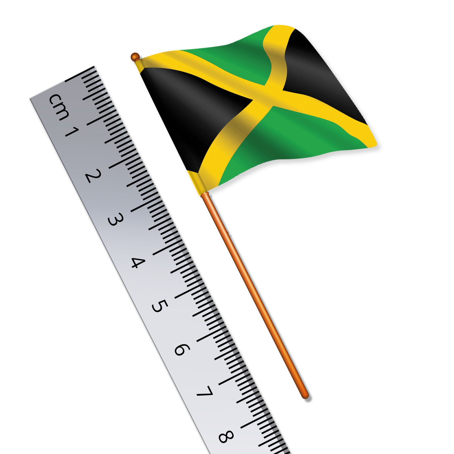 The flag of Jamaica was adopted on 6 August 1962 (Jamaican Independence Day), the country having gained independence from the British-protected Federation of the West Indies. The flag consists of a gold saltire, which divides the flag into four sections: two of them green (top and bottom) and two black (hoist and fly). It is currently the only national flag that does not contain a shade of the colours red, white, or blue. (©Wikipedia)