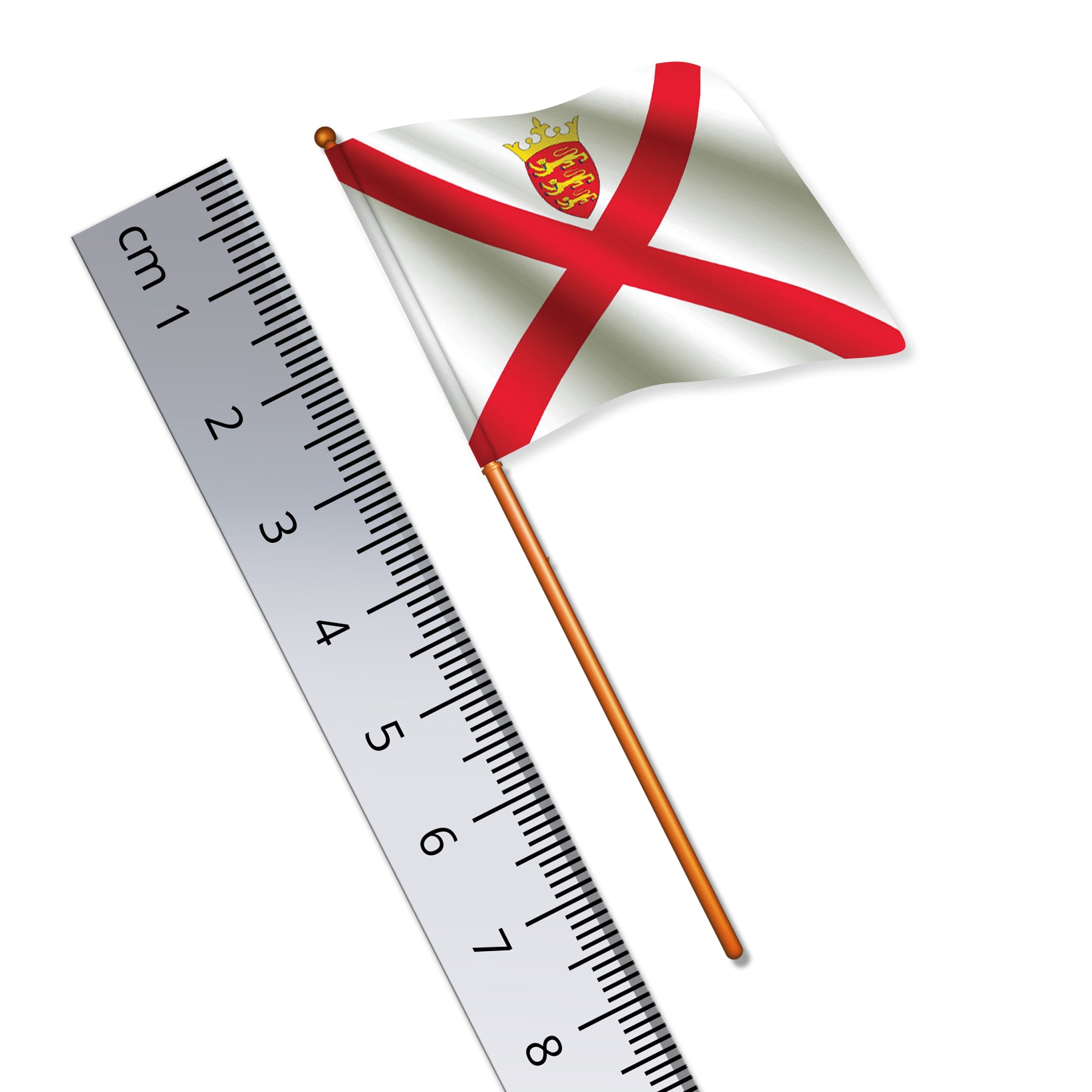 The flag of Jersey is composed of a red saltire on a white field. In the upper quadrant the badge of Jersey surmounted by a yellow "Plantagenet crown". The flag was adopted by the States of Jersey on 12 June 1979, proclaimed by Queen Elizabeth II on 10 December 1980 and first officially hoisted on 7 April 1981. (©Wikipedia)