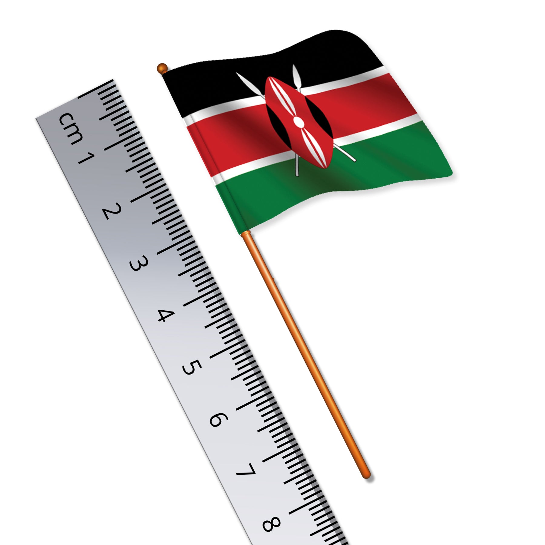 The Flag of Kenya is a tricolour of black, red, and green with two white edges imposed with a red, white and black Maasai shield and two crossed spears. The flag is based on that of Kenya African National Union and was officially adopted on 12 December 1963 after Kenya's independence. (©Wikipedia)