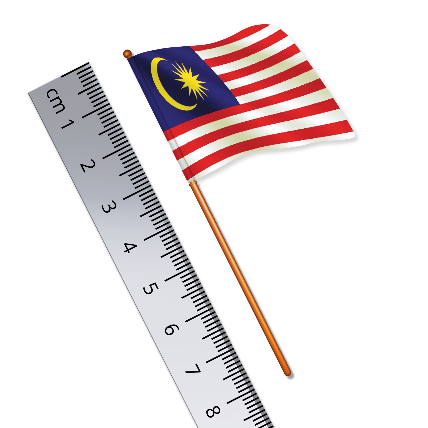 The national flag of Malaysia, also known as the Stripes of Glory, is composed of a field of 14 alternating red and white stripes along the fly and a blue canton bearing a crescent and a 14-point star known as the Bintang Persekutuan (Federal Star). The 14 stripes, of equal width, represent the equal status in the federation of the 13 member states and the federal territories, while the 14 points of the star represent the unity among these entities. The crescent represents Islam, the country's state religion; the blue canton symbolises the unity of the Malaysian people; the yellow of the star and crescent is the royal colour of the Malay rulers. It is in the stars and stripes and the Muslim crescent flag families. (©Wikipedia)