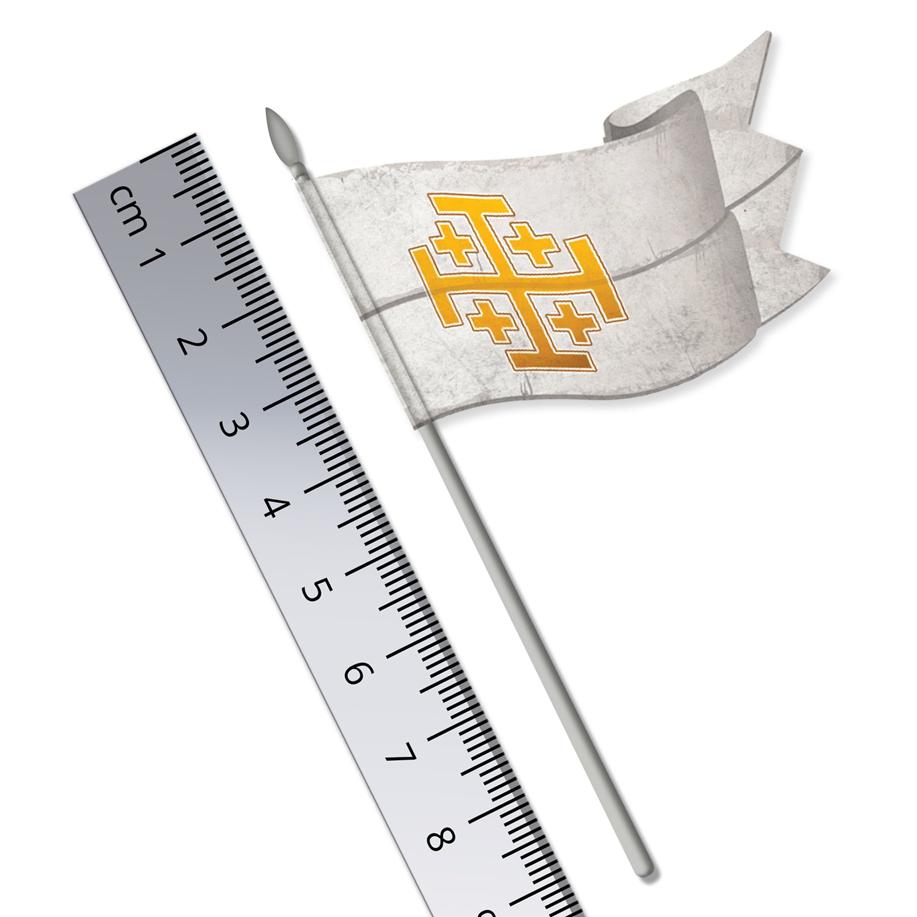 · Size: Flag width: 50mm / Pole height: 93mm inc. spearhead (Pole diameter: 2mm)