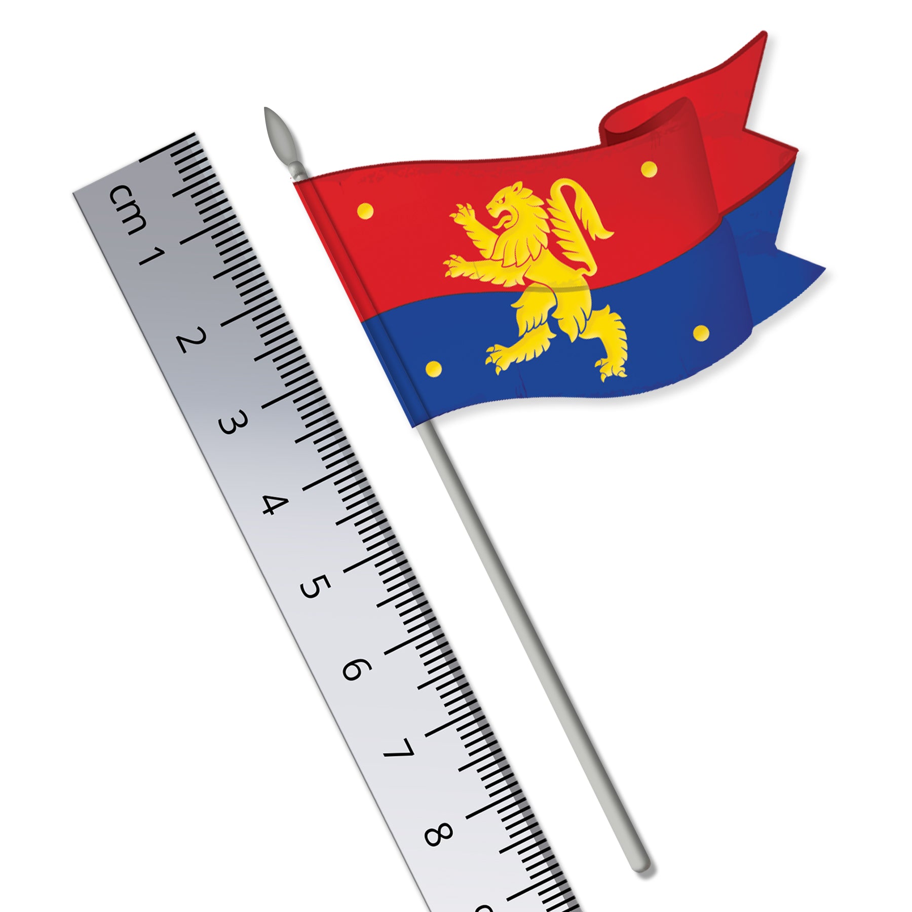 · Size: Flag width: 50mm / Pole height: 93mm inc. spearhead (Pole diameter: 2mm)