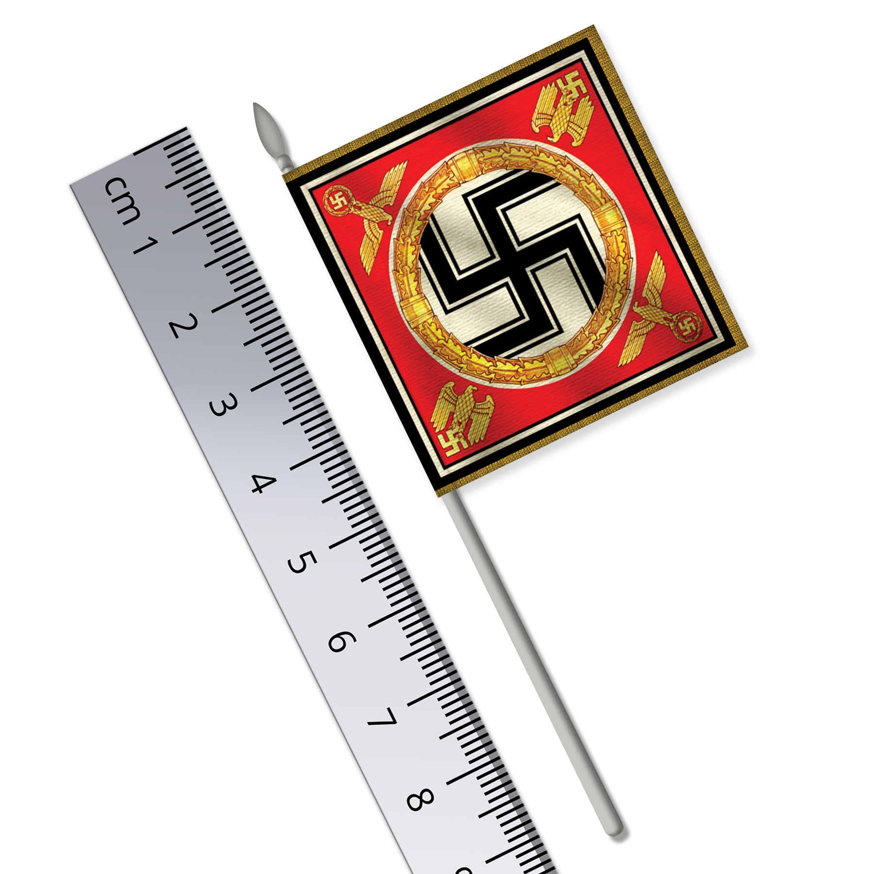 · Size: Flag width: 38mm / Pole height: 93mm inc. spearhead (Pole diameter: 2mm)