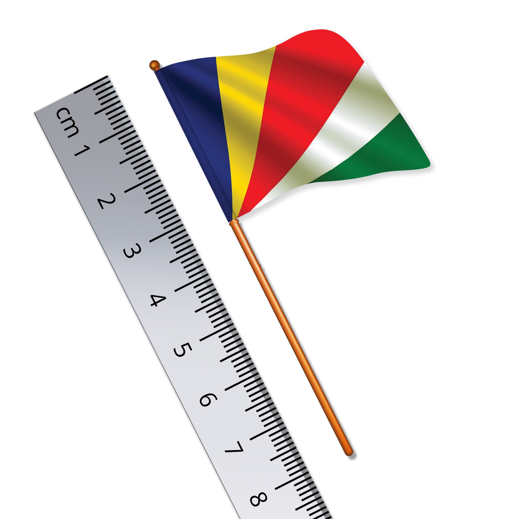 The flag of Seychelles was adopted on 8 January 1996. The current flag is the third used by the country since its independence from the United Kingdom on 29 June 1976. The colours used in the current flag are the official colours of two of the country's major political parties: the Seychelles People's United Party and the Seychelles Democratic Party. (©Wikipedia)