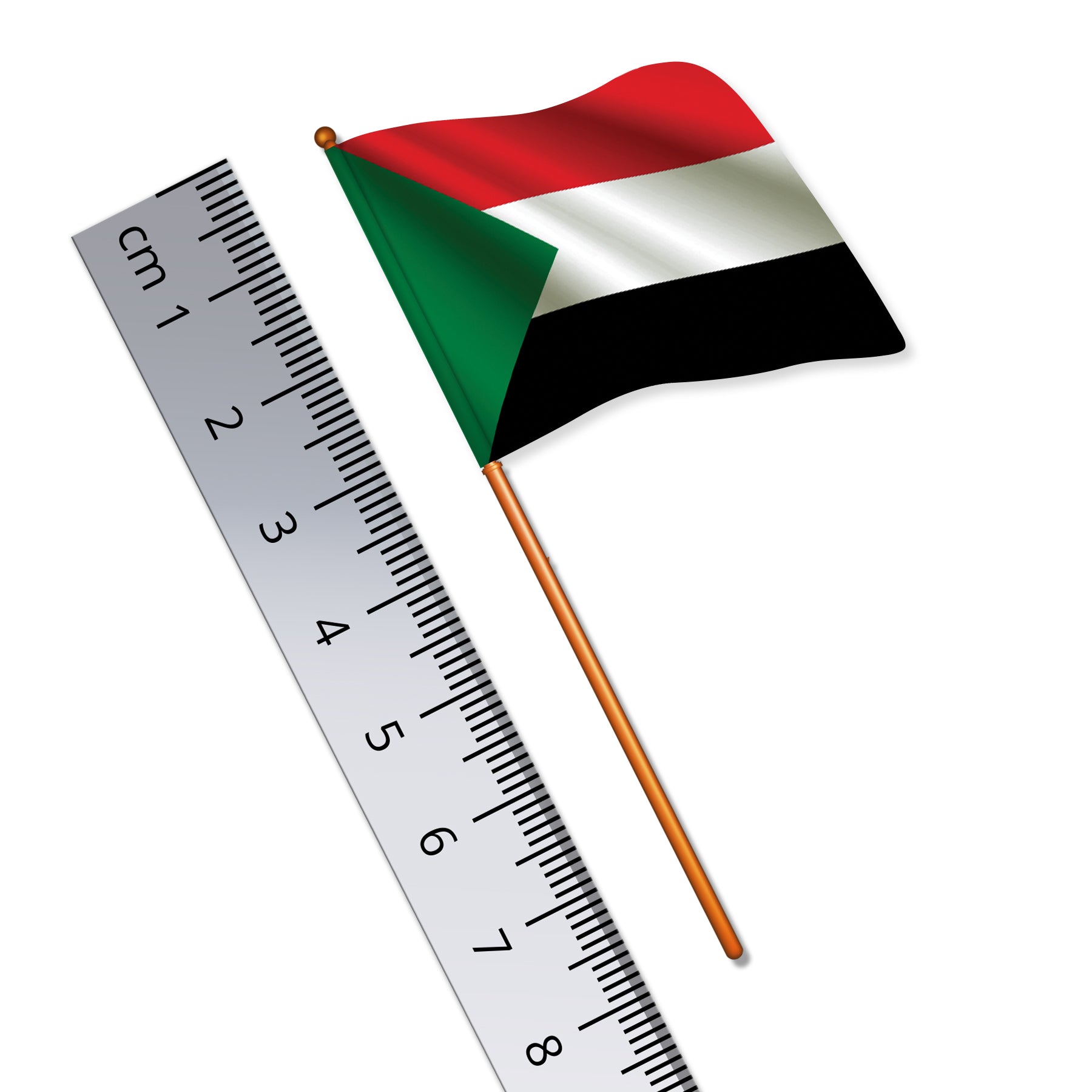 The current flag of Sudan was adopted on 20 May 1970 and consists of a horizontal red-white-black tricolour with a green triangle at the hoist. The flag is based on the Arab Liberation Flag of the Egyptian Revolution of 1952, as are the flags of Egypt, Iraq, Syria, Yemen, and Palestine and formerly of the United Arab Republic, North Yemen, South Yemen, and the Libyan Arab Republic. Whereas there is no fixed order for the Pan-Arab Colours of black, white, red, and green, flags using the Arab Liberation Colours (a subset of the Pan-Arab Colours) maintain a horizontal triband of equal stripes of red, white, and black, with green being used to distinguish the different flags from each other by way of green stars, Arabic script, or, in the case of Sudan, the green triangle along the hoist. In the original Arab Liberation Flag, green was used in the form of the flag of the Kingdom of Egypt and Sudan emblazoned on the breast of the Eagle of Saladin in the middle stripe. For 13 years from Sudan's independence in 1956 to the 1969 military coup of Gaafar Nimeiry, Sudan used a tricolour flag of blue-yellow-green. (©Wikipedia)